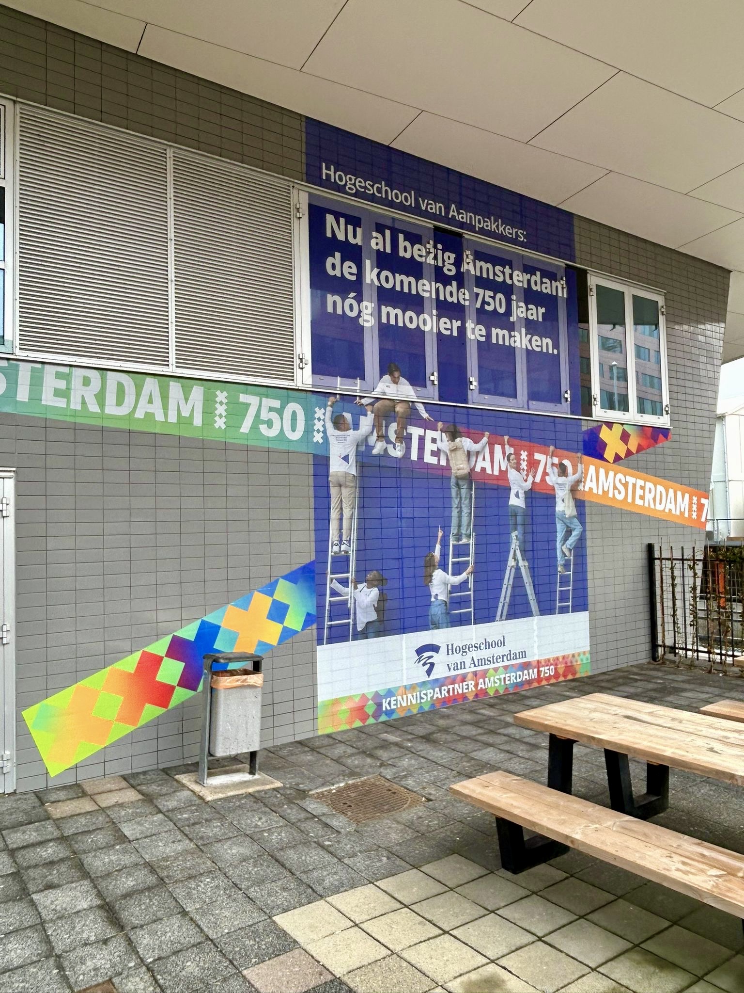 Wat een prachtige afsluiter van 2024: we hebben weer een nieuwe @hogeschoolvanamsterdam vestiging mogen voorzien van de feestelijke @amsterdam750 slingers en visuals 🏙️🎉