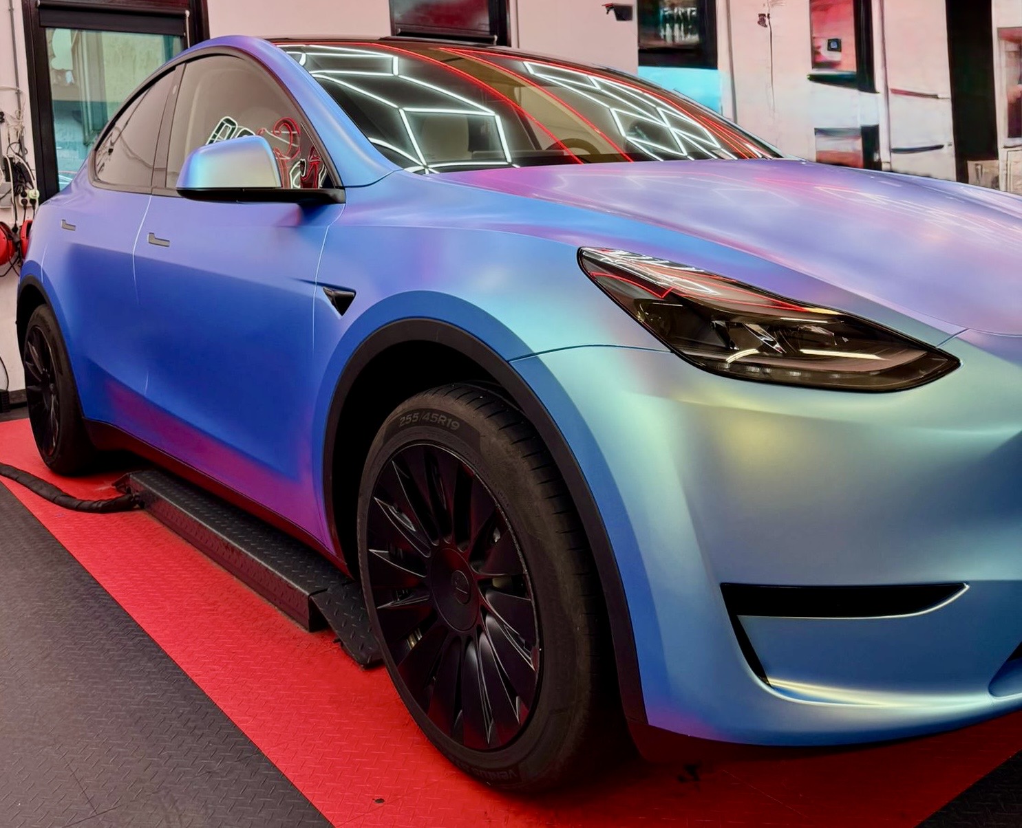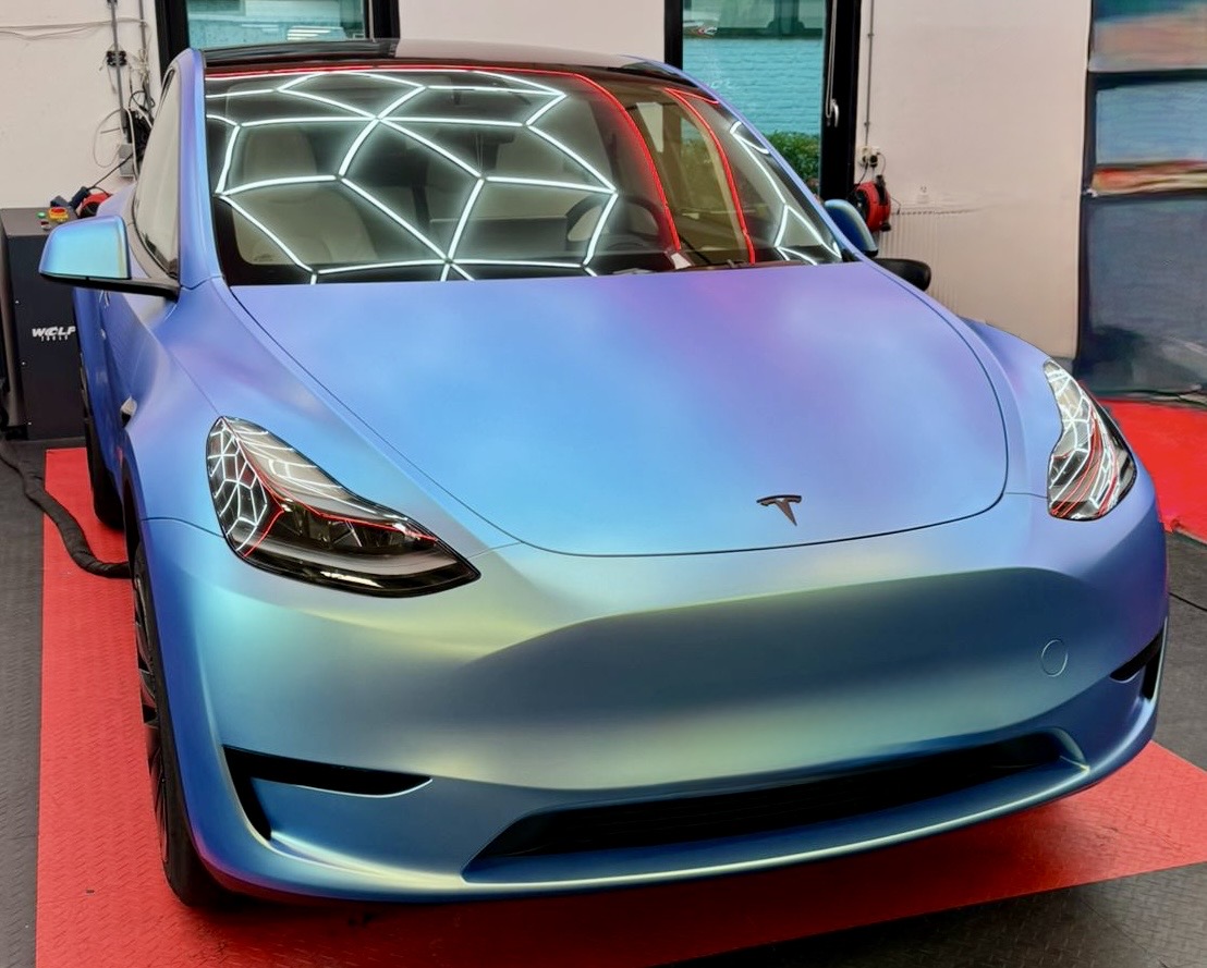 #Tesla #ModelY #CarWrap #ColorShift #MatteWrap #TeslaWrap #Autostyling #PremiumWrap #CarEnthusiast #Detailing #WrapLife