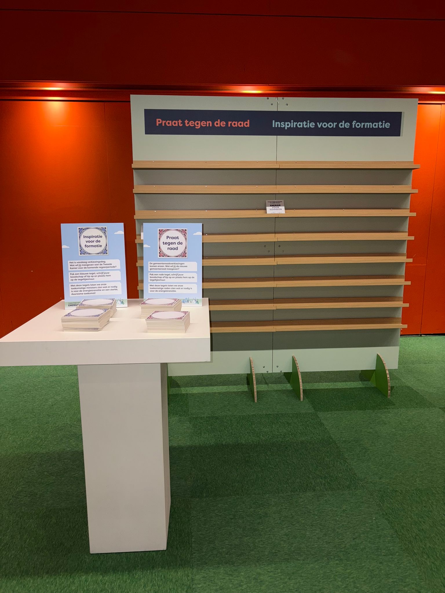 Gasten van het congres konden op een ‘tegeltje’ hun wensen en ideeën schrijven en in de wand zetten, leuk idee en uitvoerig!