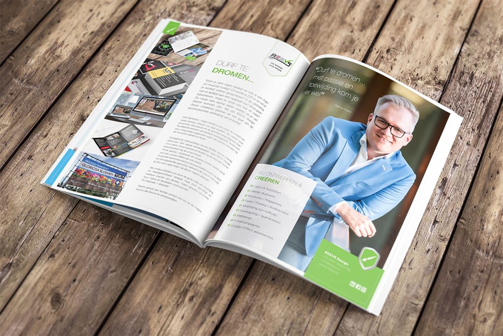Brochures en Magazines zijn verkrijgbaar in diverse formaten en papiersoorten. Een brochure of magazine wordt geniet gebrocheerd en je kunt deze samenstellen tot wel honderden pagina’s!