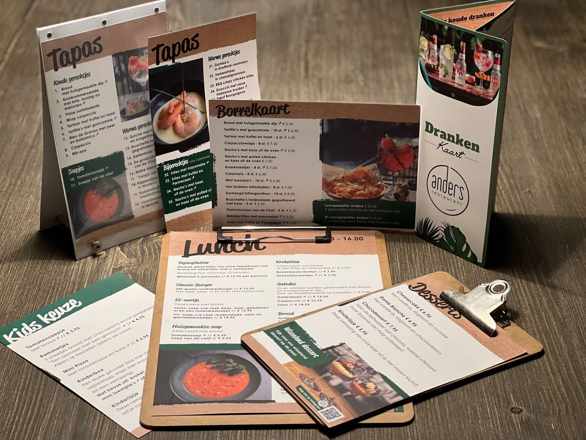 Voor de horeca of evenementenbranche zijn menukaarten hét visitekaartje voor de gasten. Laat de gasten een keuze maken uit het verschillende aanbod van jouw eigen menukaart. Beschikbaar in elk gewenst formaat en met of zonder beschermend laminaat.
