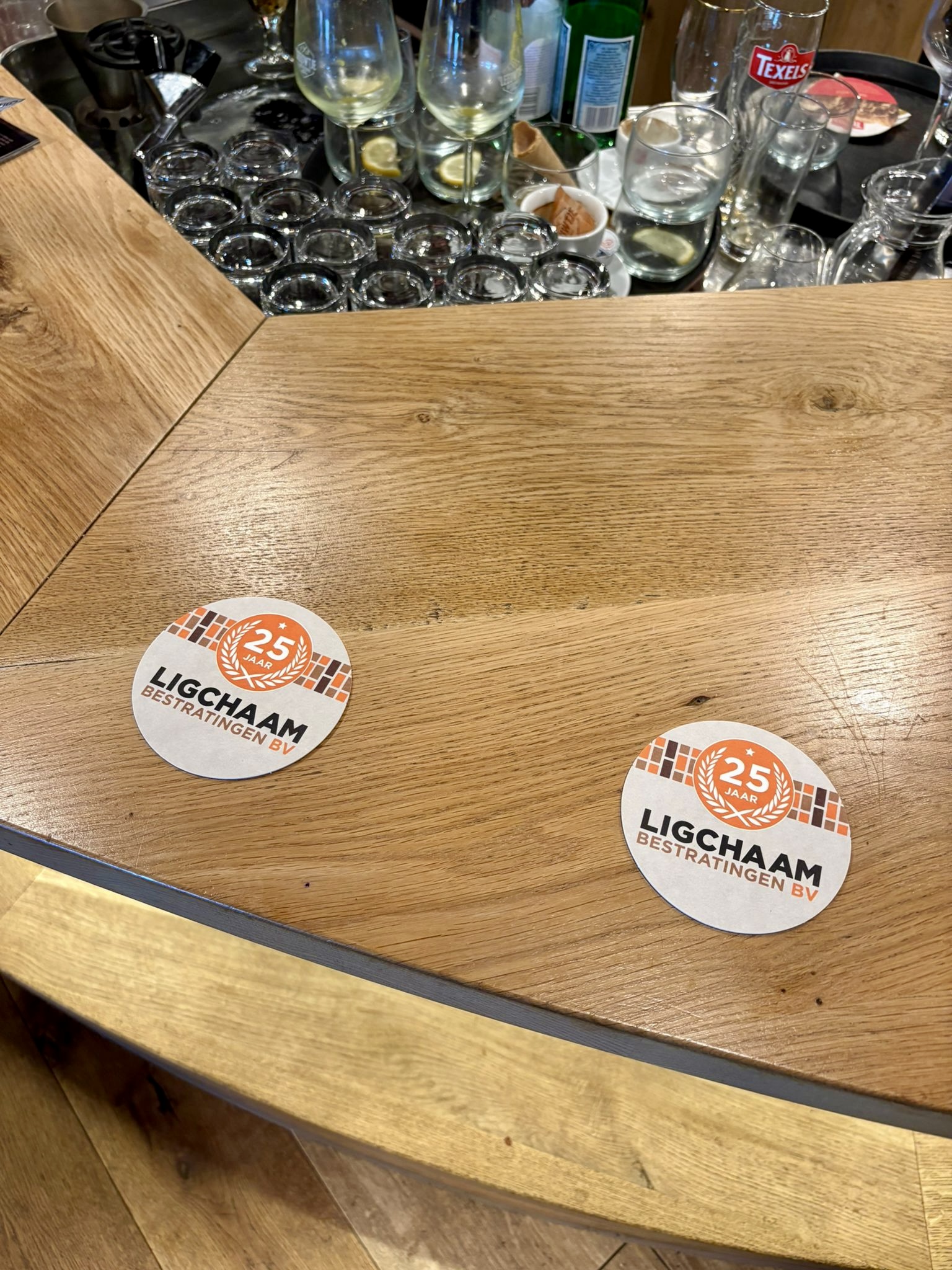 Bij Bistrobar ’t Leeuwtje vierden we dit prachtige jubileum in stijl. Wij mochten zorgen voor de aankleding met opvallend drukwerk: skytubes, bierviltjes, vlaggen, vlaggenlijnen en de bestickerde shovel. 🦺