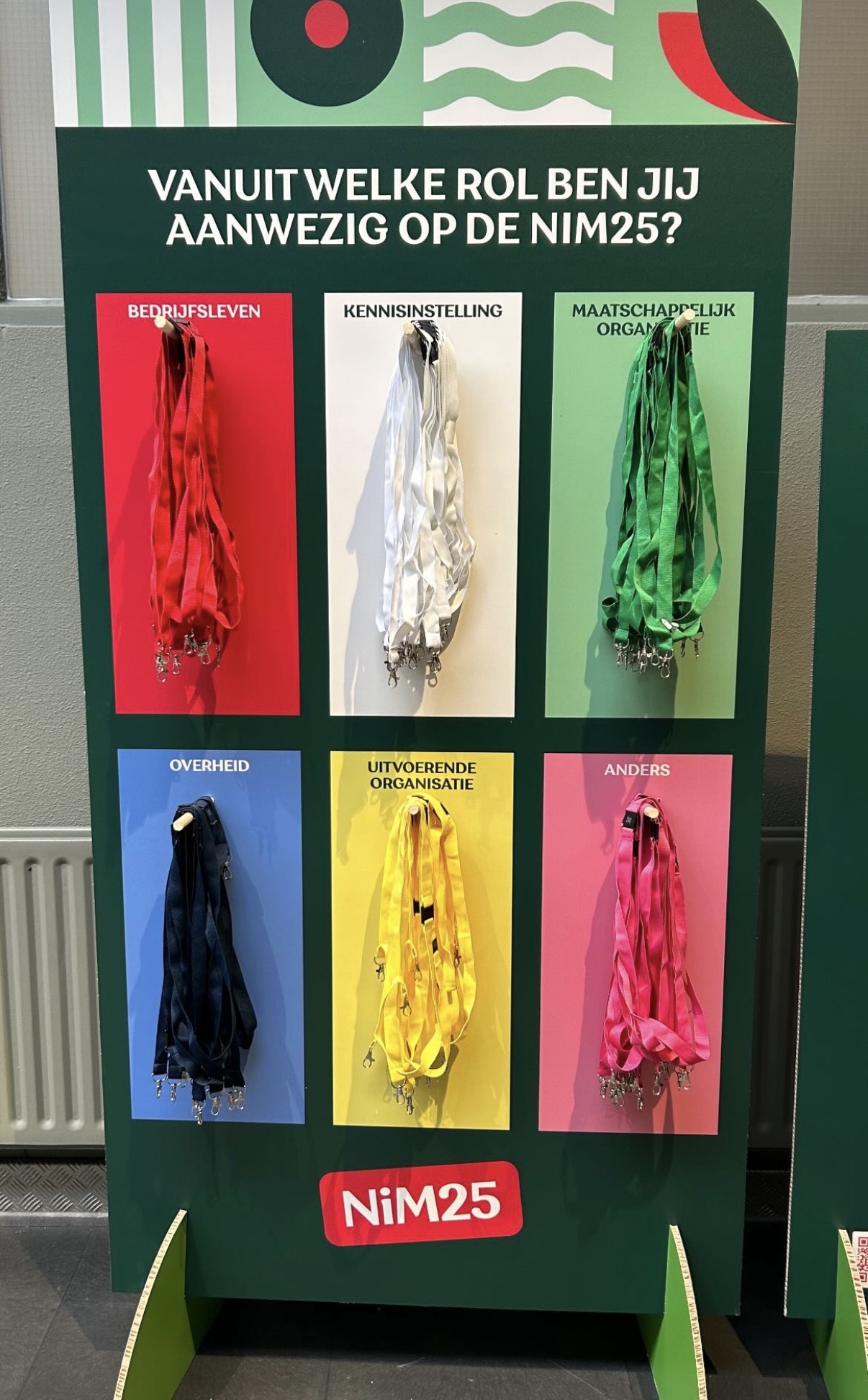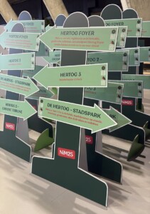 Alles was duurzaam uitgevoerd: borden van karton, podiumbanieren van gerecycled materiaal, bewegwijzering van honinggraatkarton, visitekaartjes van gerecycled papier én een handgemaakte duurzame kapstok, allemaal volledig in de stijl van het evenement.