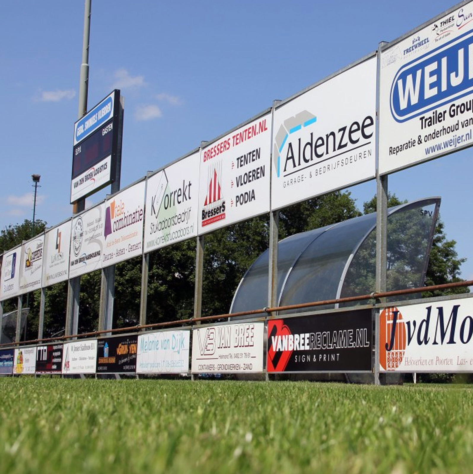 Maak je reclame bij of op sportterreinen of evenementen? Dan wil je natuurlijk dat jouw reclamebord lang mooi blijft en goed opvalt. Wij produceren en monteren reclameborden: op basis van enkel jouw logo of met een compleet (aangeleverd) ontwerp.