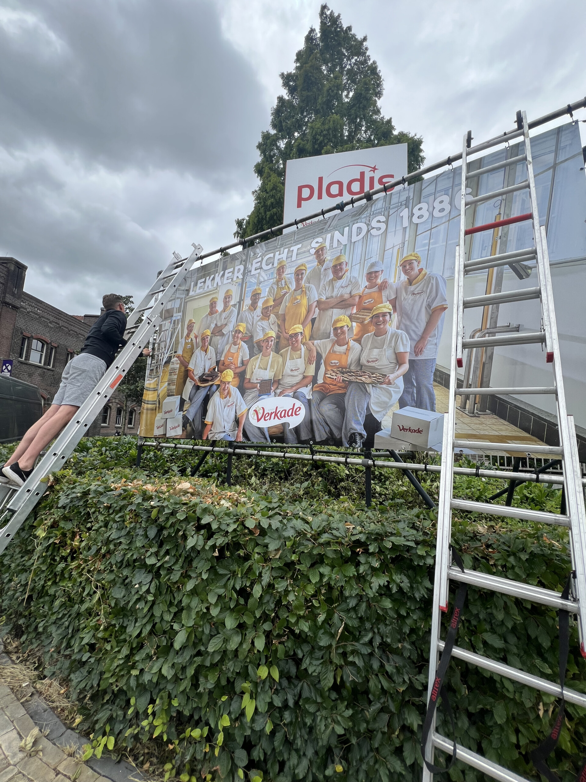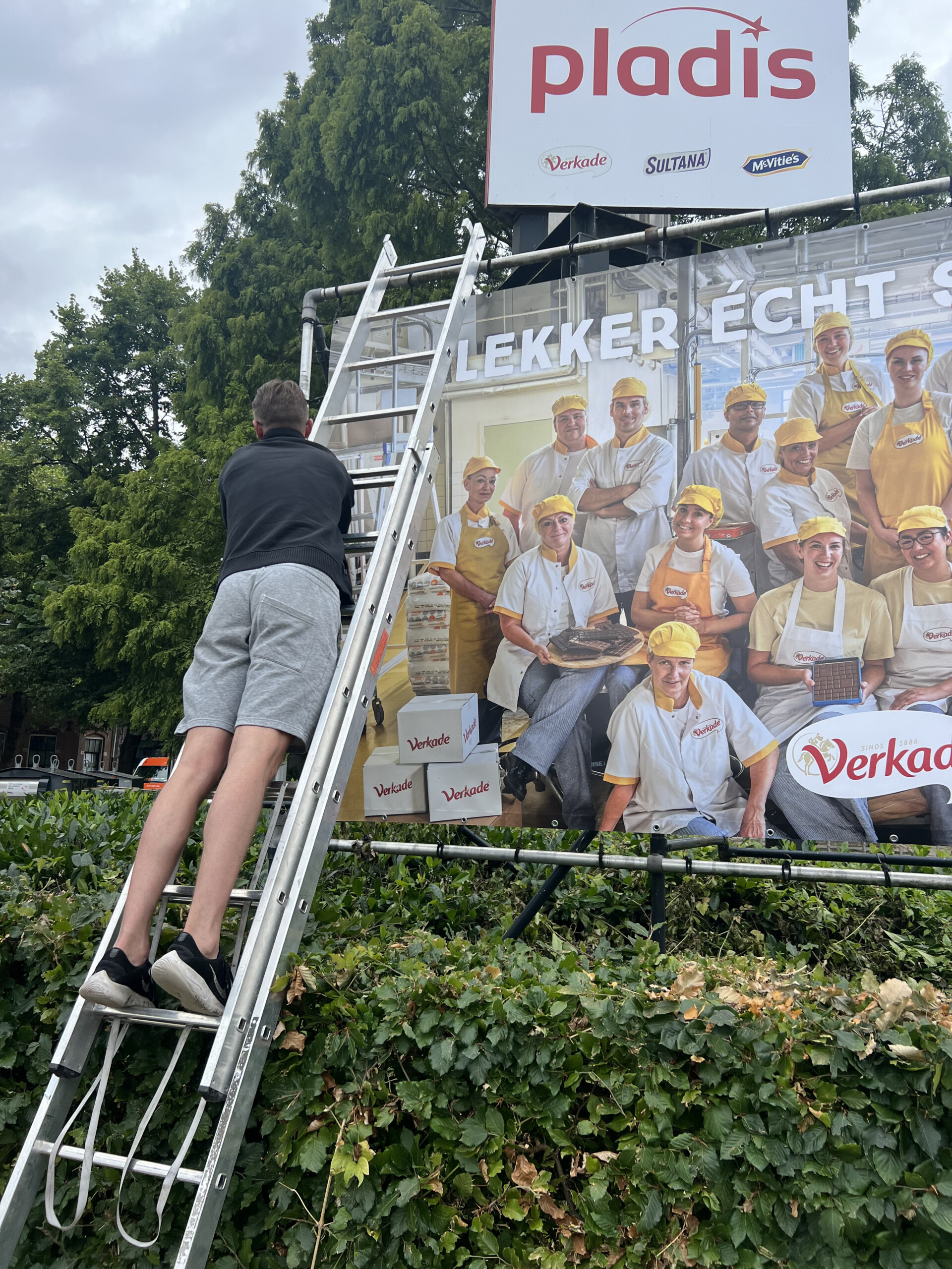 Dit grote en vooral opvallende spandoekframe mogen neerzetten bij de enige echte fabriek van Verkade Nederland!